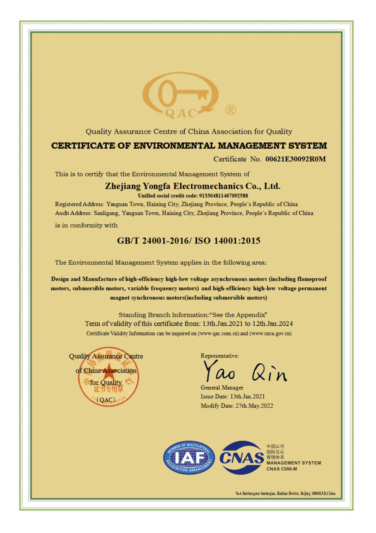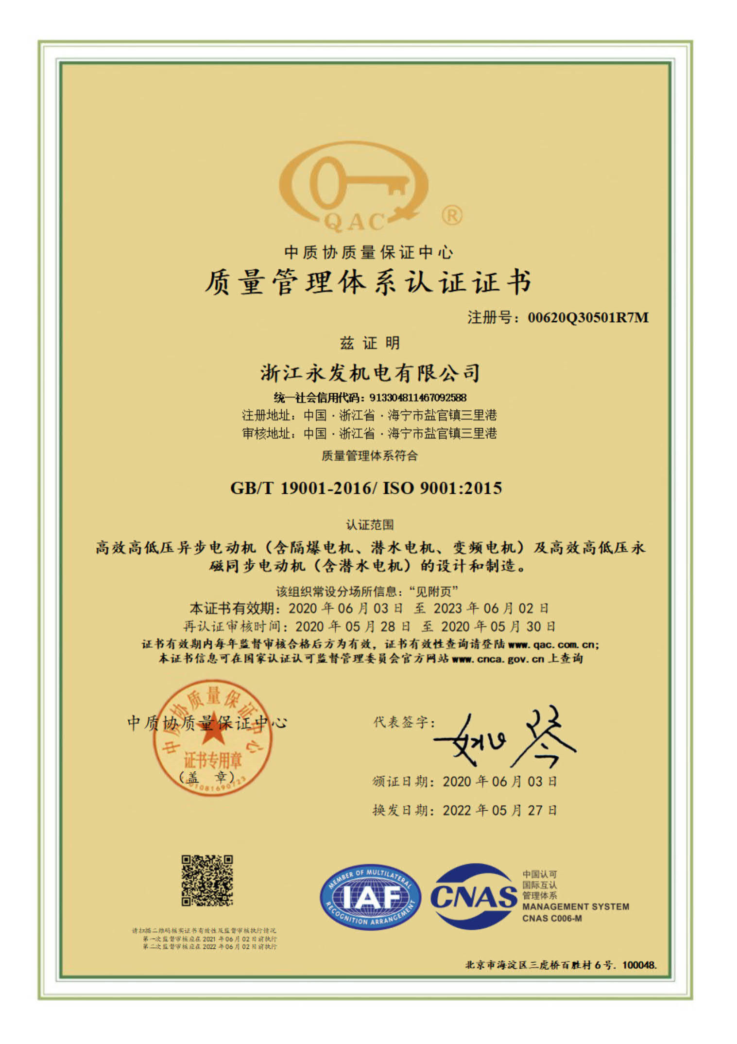 浙江永發(fā)機(jī)電有限公司始建于1967年,是設(shè)計(jì)制造各類三相異步電動機(jī)的專業(yè)大型企業(yè),公司占地面積12.5萬平方米,建筑面積7.2萬平方米,公司擁有各種精良先進(jìn)的加工制造設(shè)備、檢測試設(shè)備,并在全國電機(jī)行業(yè)中建立了三條優(yōu)質(zhì)的自動化數(shù)控檢測線,擁有大型壓鑄機(jī)和VPI真空浸漆設(shè)備,1噸-10噸動平衡儀等各類大型檢測設(shè)備。
